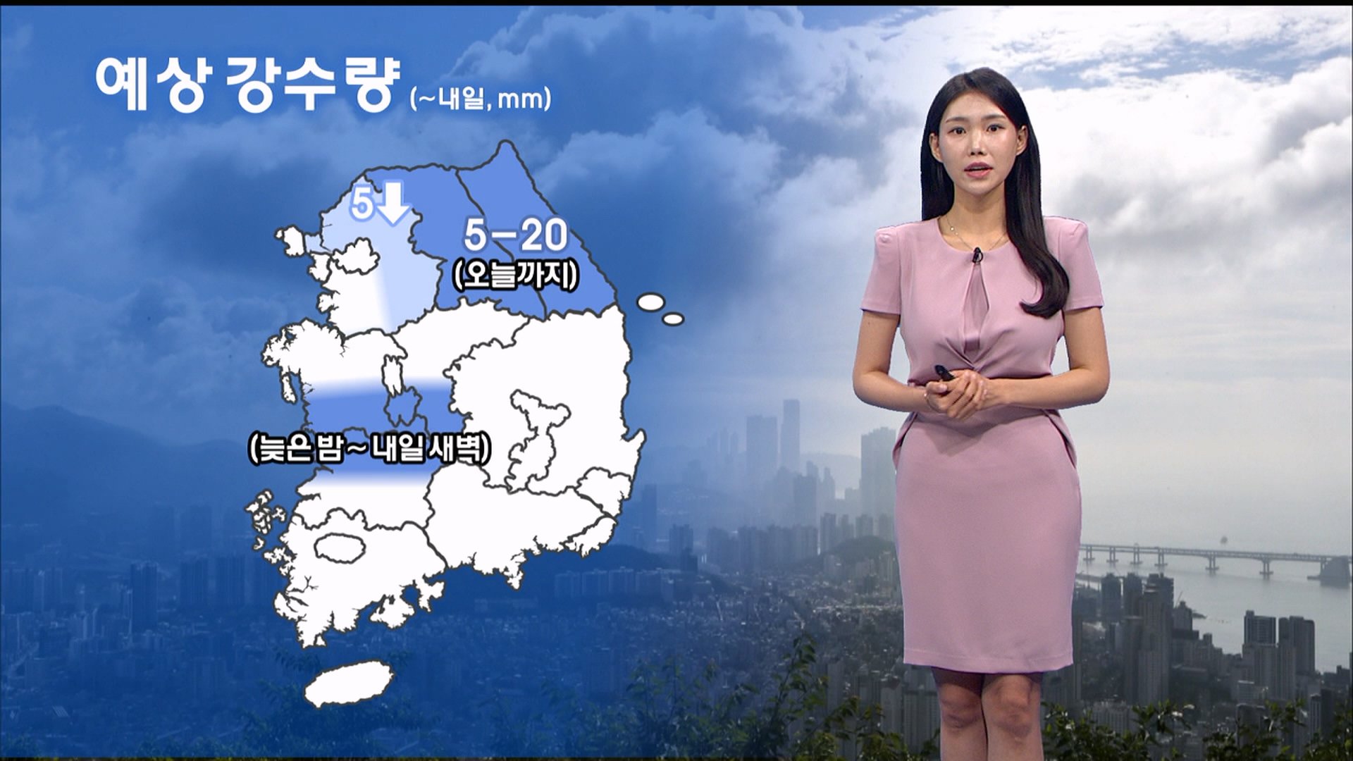 재생 0회 | 등록 2025.06.16오늘 저녁까지 중부 곳곳에는 비가 더 내리겠습니다. 오늘 늦은 저녁까지 경기북동부에는 5mm 미만이, 강원도에는 5-20mm…