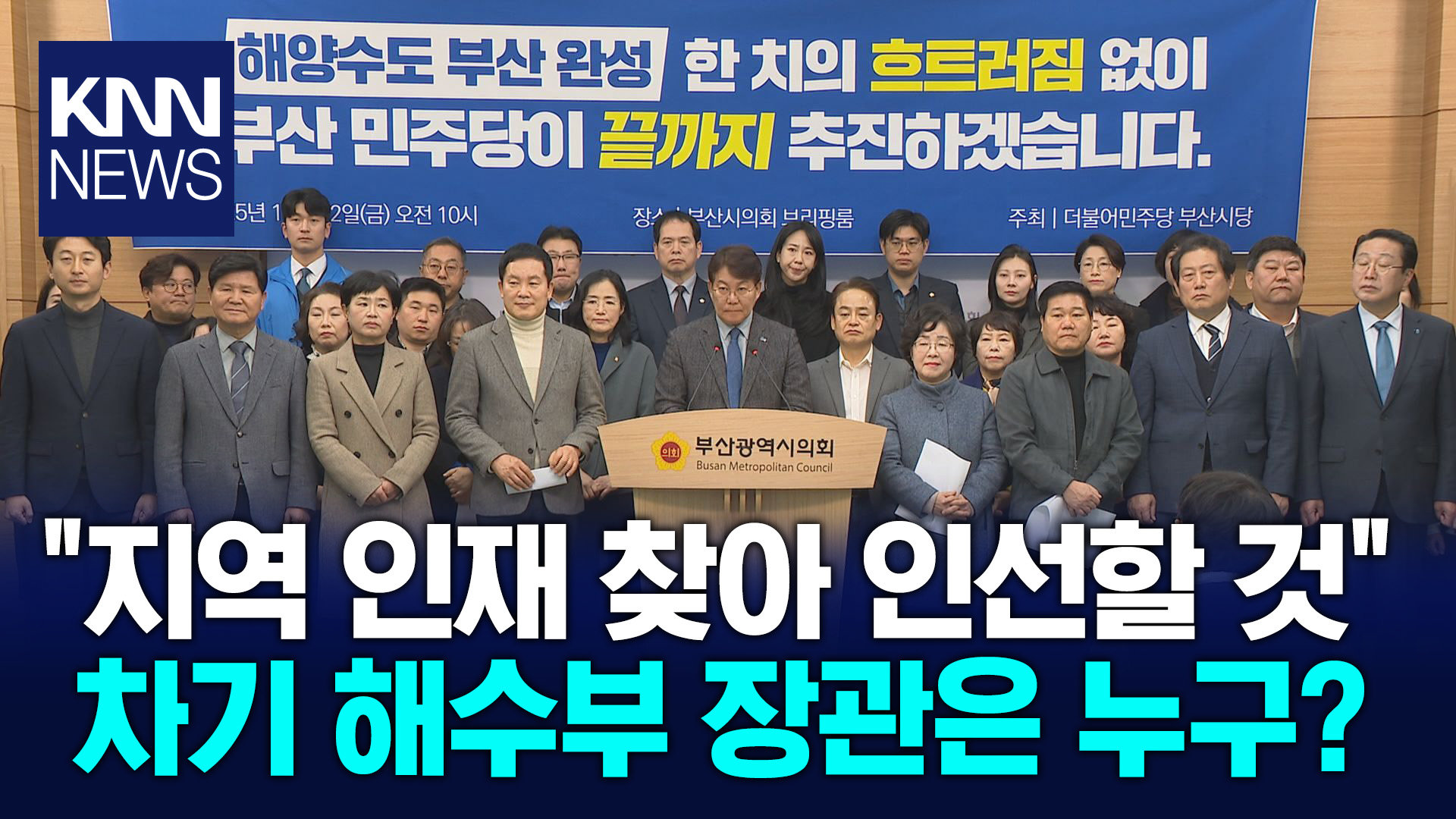 [앵커] 오늘(23) 부산을 찾은 이재명 대통령은 차기 해양수산부 장관을 지역 인물 가운데 임명할 뜻을 직접 밝혔습니다. 차기 장관 후보군이 압축된 것 아니냐는 해석도 나오고 있습니다. 이어서 황보 람 기자가 보도합니다. [기자] 이재명 대통령은 해양수산부 부산 임시청사에서 국무회의를 열었습니다. 이 대통령은 전재수 전 장관의 낙마 이후 부산 지역의 우려를 감안한 듯 차기 장관 인선에 대한 의지를 직접 밝혔습니다. {이재명 대통령/"후임 해수부 장관도 가급적이면 부산 지역에서 인재를 구해보도록 노력하고 있단 말씀드립니다."} 지역에서는 전재수 전 장관의 갑작스런 사퇴로 ′해양수도 부산′ 프로젝트에 대한 우려가 제기됐습니다. 이에 대해 지역 정치권은 여야 없이 차질 없는 추진을 강조해 왔습니다. {변성완/더불어민주당 부산시당위원장(지난 12일)/"해양수도 부산은 이재명 정부의 국정과제입니다. 대한민국 성장 동력을 위한 국가 전략입니다. 앞으로도 부산의 해양 미래 전략은 흔들림 없이 (나가야 합니다)."} :또 조속한 차기 장관 선임으로 공백을 최소화해야 한다는 점에서도 지역 여야 모두 이견이 없습니다. 다만, 선임 기준을 놓고는 약간의 시각 차를 보이고 있습니다. 여당은 정부와의 유기적인 소통 등 정치력 있는 지역 인사의 유리함을 더 강조하고 있습니다. 이에 비해 전재수 전 장관의 낙마를 겨냥한 야당은 도덕성과 함께 해양수산 업무 전반에 대한 이해도가 높은 전문성을 갖춘 인물을 강조합니다. 정치색은 배제하자는 의미가 큽니다. {조경태/국민의힘 의원/"미래를 위해서 또 해양 강국을 위해서는 해양을 누구보다도 잘 알고, 또 미래지향적인 그런 인물이 저는 해양수산부 장관으로 적임자가 아니겠느냐 (생각합니다)."} 한편 대통령이 차기 장관과 관련해 직접 언급하면서 후보군이 좁혀진 것 아니냐는 해석도 나오고 있습니다. 국회에서, KNN 황보 람입니다. 영상취재 박언국