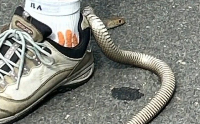 [앉아서 세계 속으로]운동화 고리에 걸린 독사…침착함이 목숨 구해