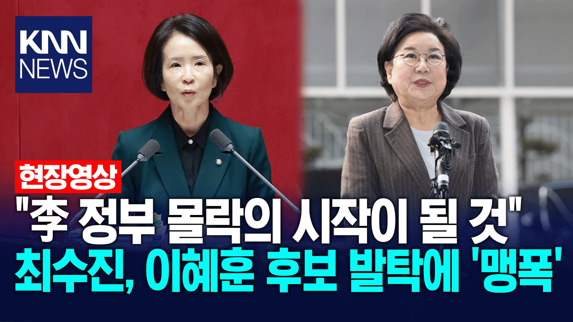 "이재명 대통령 정부 몰락의 시작이 될 것" 최수진, 이혜훈 후보 발탁에 ′맹폭′ / KNN