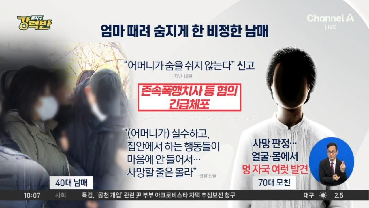 [돌직구 강력반]70대 어머니 때려 숨지게 한 40대 남매 구속
