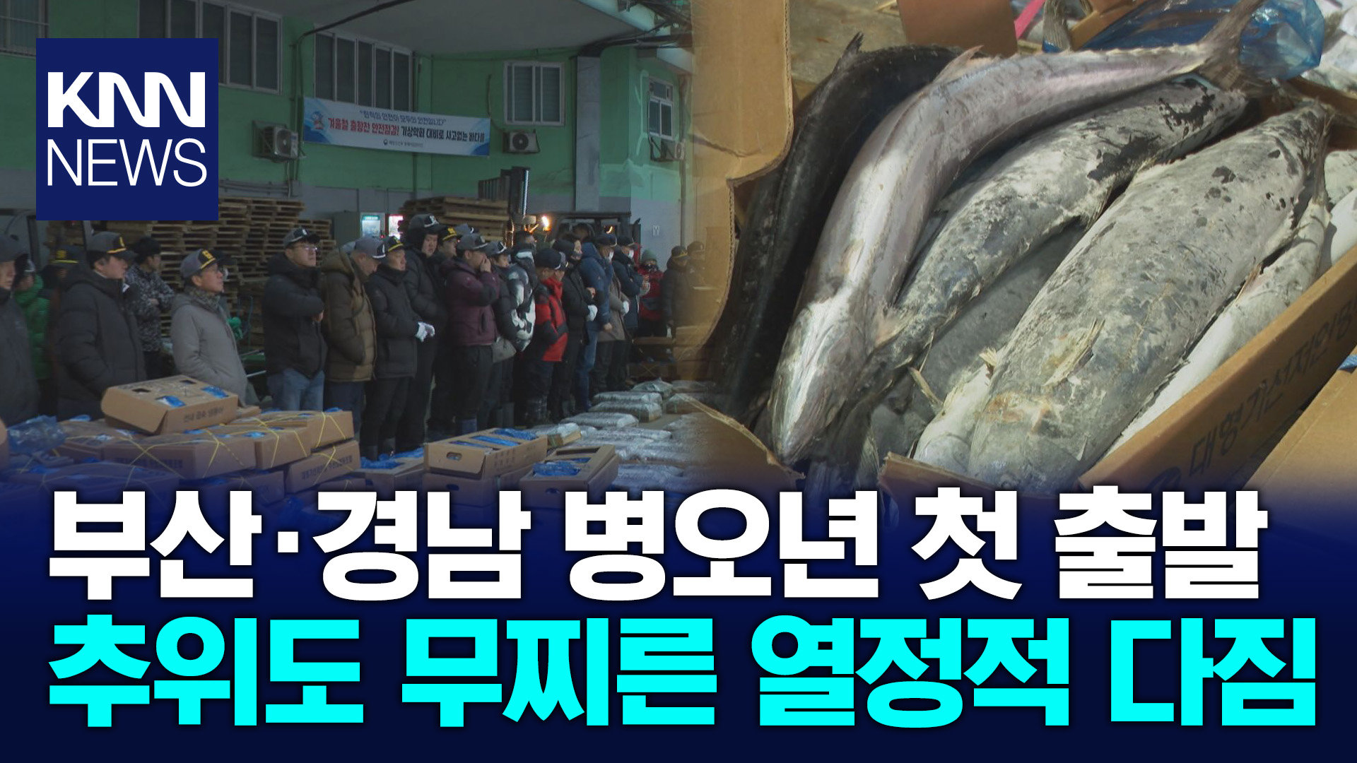 <앵커> 붉은 말의 해인 2026년 첫 업무 시작에 맞춰 부산경남 곳곳에서 한 해 업무 시작을 알리는 여러 자리가 마련됐습니다. 매서운 강추위 속에서도 부산공동어시장에선 올해 첫 경매가 열렸고, 각 기관과 기업에서도 힘찬 한 해를 다짐했습니다. 옥민지 기자입니다. <기자> 경매사들의 활기찬 목소리와 함께 2026년 부산공동어시장의 첫 경매가 시작됩니다. 경매사 / "3만 원, 3만3천 원" 칼바람까지 불면서 체감온도가 영하10도 안팎까지 떨어졌지만 중도매인들의 목소리는 밝았습니다. "2026년 새해 첫 경매가 열린 초매식 현장입니다. 특히 올해는 해양수산부 부산 이전과 공동어시장 현대화사업 착공 이후 열린 첫 초매식으로 그 의미가 더 큽니다." 새해 첫 경매에서는 163톤, 6억 8천만원어치의 수산물이 팔렸습니다. 지난해 위판고 3,800억 원을 넘기며 13년 만에 최고 실적을 달성한 공동어시장은 올해도 그 상승세를 이어가겠다는 계획입니다. 임홍택/중도매인협동조합 부이사장/"2025년도 올 한 해 매출액을 능가하는 그런 한 해가 됐으면 하는 바람입니다." 하지만 현대화 사업 기간 동안 사용할 대체 위판장을 조기에 확보해 경매 물량 유출을 차단해야 하는 과제도 남아있습니다. 정연송/부산공동어시장 대표이사/"대체위판장은 우리 부산공동어시장은 갖은 고민 중의 하나지만 지혜롭게 우리 어시장 부지내에서 부산시의 행정적인 지원을 받아서 .." 부산*경남의 각 기관과 기업들도 새해 첫 업무를 시작했습니다. 박형준 부산시장은 시무식에서 부산을 맛과 멋이 있는 재미있는 도시로 만드는 일에 박차를 가하겠다고 다짐했고, 박형준/부산시장 "부산이 재밌기 때문에 해외관광객이 350만 이상이 들어올 수 있는 것이고.." 박완수 경남도지사는 새해 첫 날부터 동부 경남 지역 현장 곳곳을 둘러보는 것으로 병오년을 시작했습니다. 박완수/경남도지사 "밤 중이나 이럴 때는 마을 병원 문을 안 여니까 일반 병원들은..다 응급실로 오다 보니까" 지역 기업들도 새로운 한해에 대한 각오를 다졌습니다. 최재호/창원상공회의소 회장/"올해는 저희가 세계 시장을 힘차게 나아갈 수 있는 원년이 되도록 하고자 합니다." 병오년 새해를 맞은 부산경남이 붉은말, 적토마의 활기차고 역동적인 기운을 받아 2026년의 첫날을 힘차게 열어 젖혔습니다. KNN 옥민지입니다. 영상취재: 권용국·박은성
