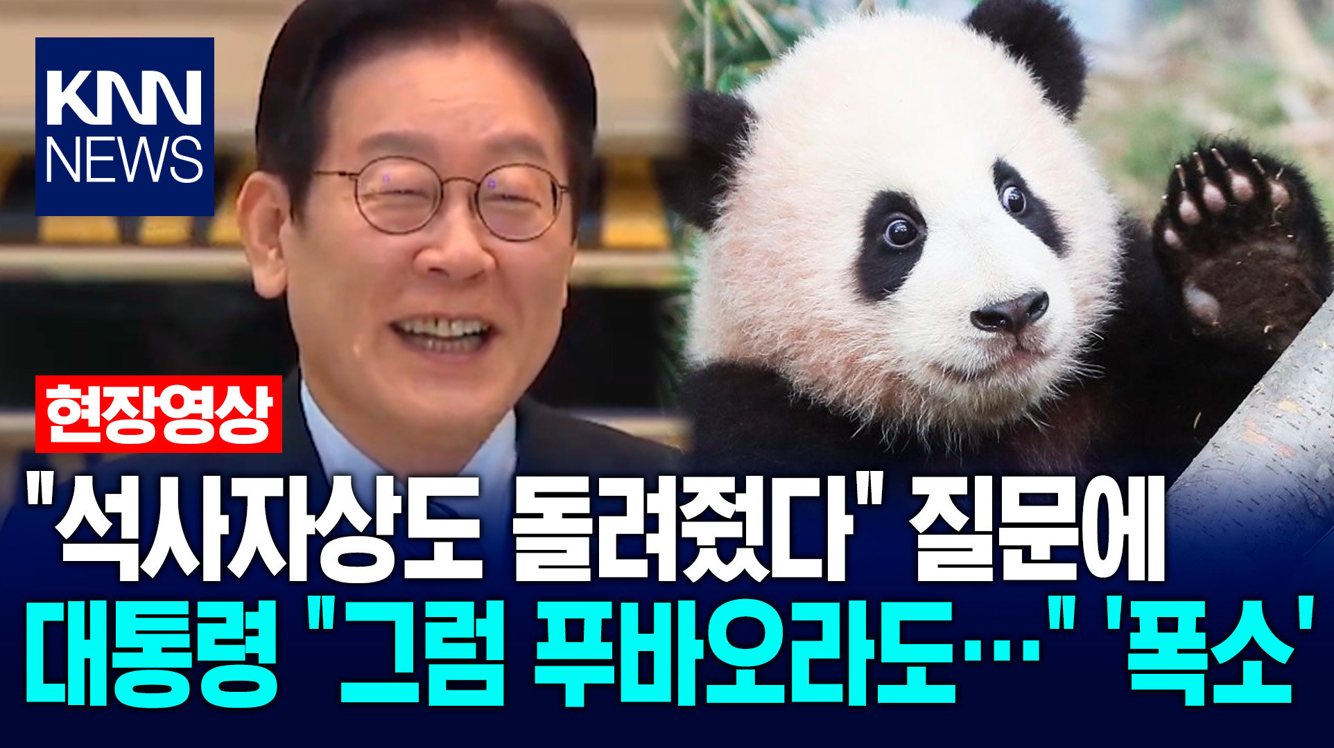 "석사자상도 돌려줬다" 질문에 이재명 대통령 "그럼 푸바오라도…" ′폭소′ / KNN