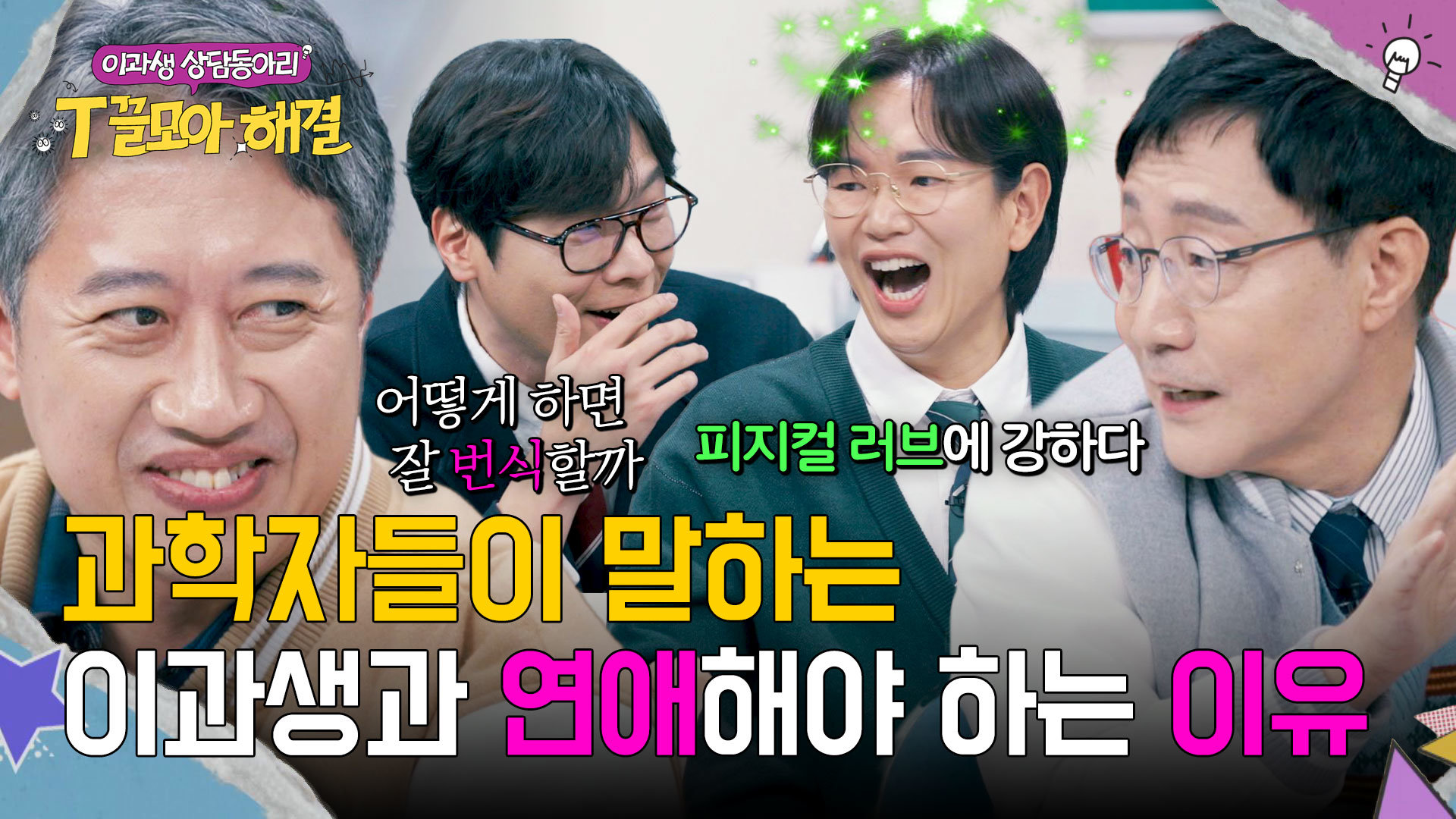 재생 0회 | 등록 2026.01.07"'피지컬 러브'에 강하다ㅎ" 과연 이과 중 연애 TOP은 어디~? #T끌모아해결 #이과 #연애 ---------------…