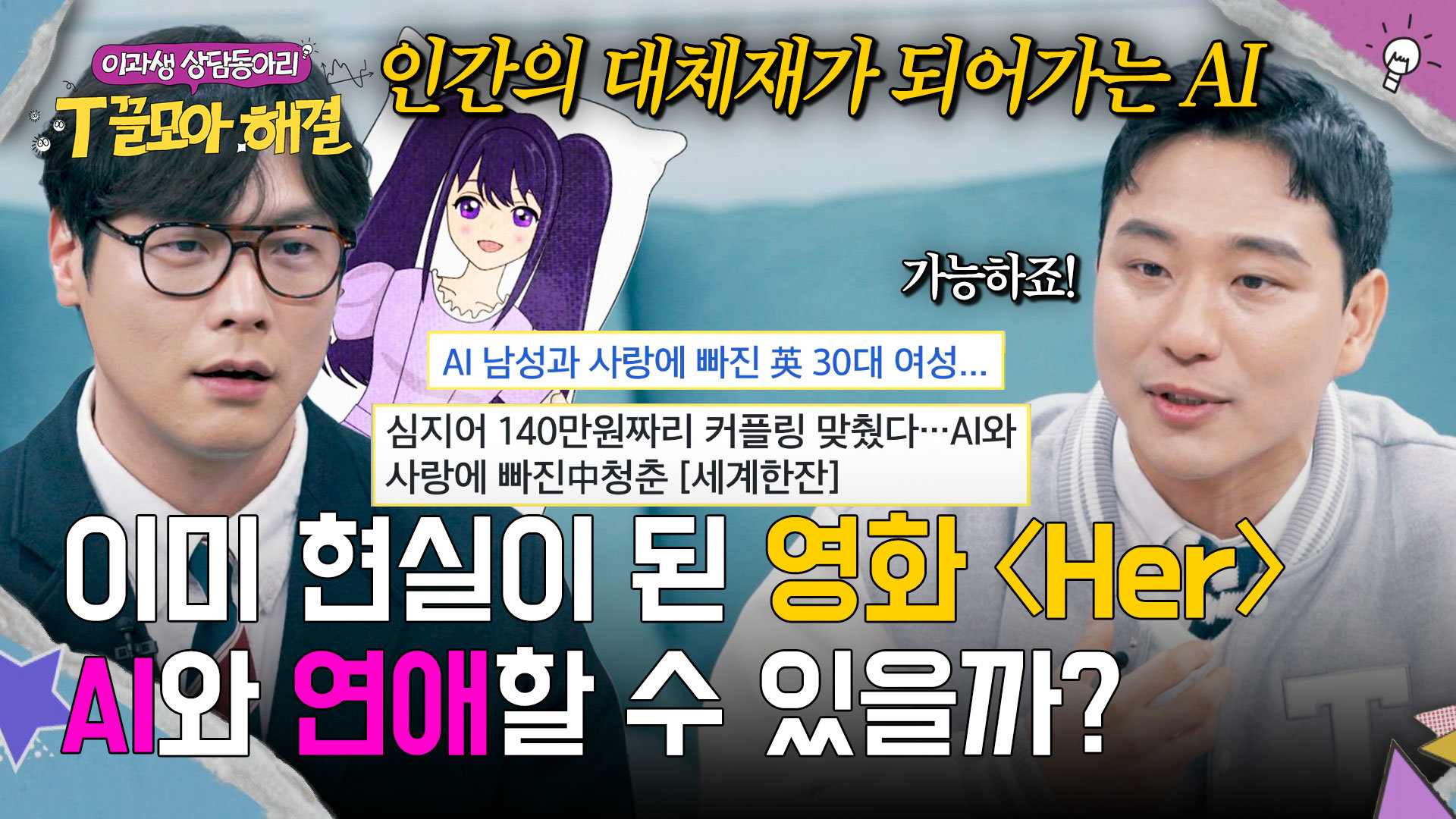 요즘 MZ들의 새로운 연애 방식?! 과연 AI와 연애를 할 수 있을까? #T끌모아해결 #AI #연애 ------------------------------------------------------------------------------- 이 프로그램은 과학기술진흥기금 및 복권기금의 재원으로 운영되고, 과학기술정보통신부와 한국과학창의재단의 지원을 받아 수행된 성과물로 우리나라 과학기술 발전과 저소득·소외계층의 복지 증진에도 기여하고 있습니다 ------------------------------------------------------------------------------- 공홈에서 리플레이 : https://tv.jtbc.co.kr/Tggeul