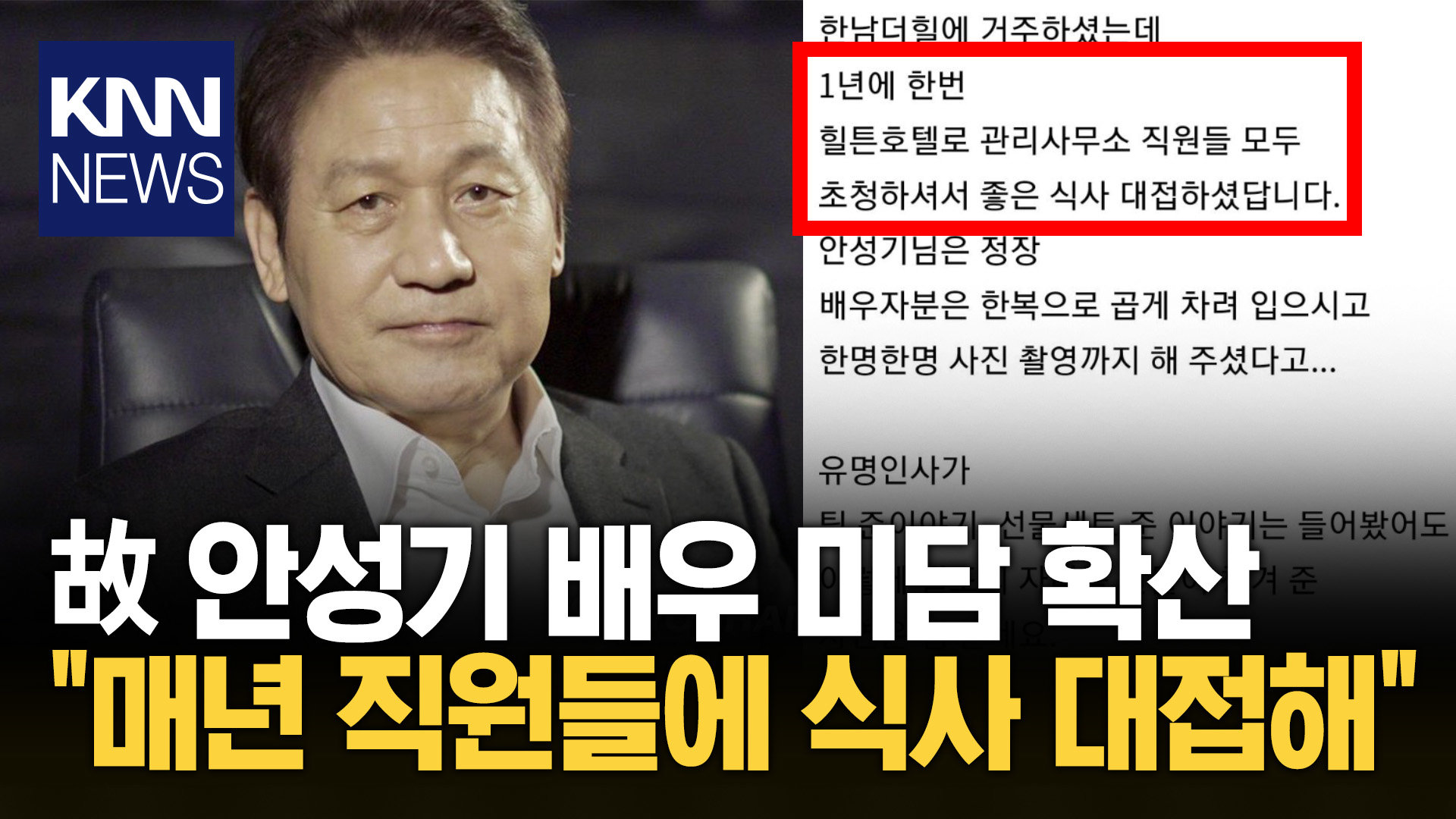 故 안성기 배우 미담 확산 "매년 직원들에 식사 대접해" / KNN