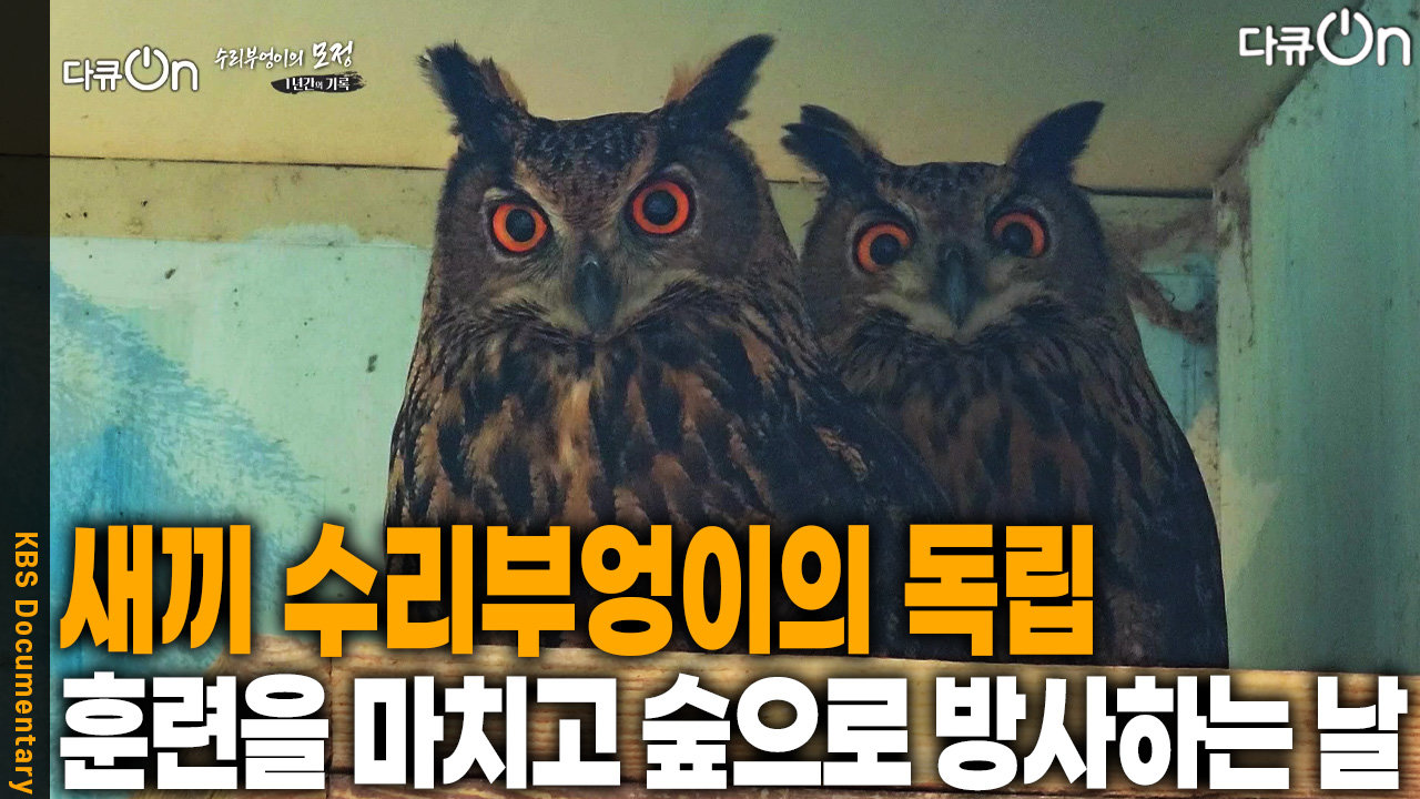 재생 0회 | 등록 2026.01.10새끼 수리부엉이의 독립, 숲으로 방사하는 날 Copyright ⓒ KBS. All rights reserved. 무단 전재,…