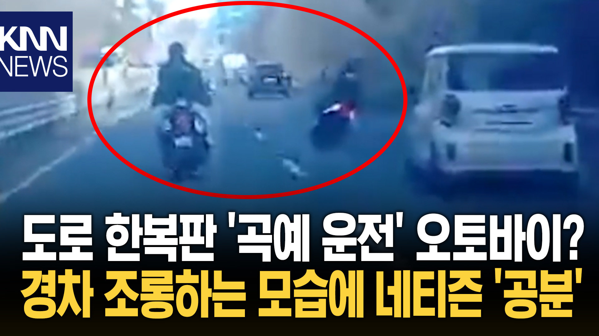 오토바이 두 대 잇단 ′경차 조롱′ 차 앞 S자 ′곡예 운전′까지 아찔/ KNN