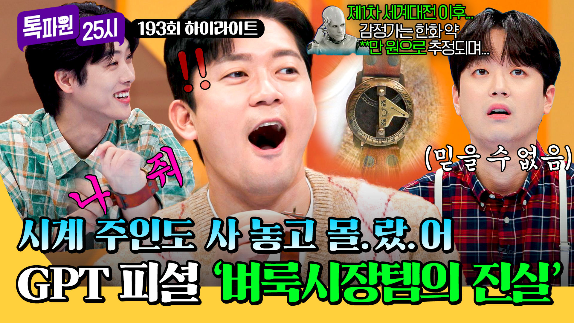 재생 0회 | 등록 2026.01.15[하이라이트] (GPT 감별🧐) 벼룩시장에서 산 시계가 알고 보니 유물?! 비난받던 김대호 시계의 숨겨진 가치 #톡파원25시…