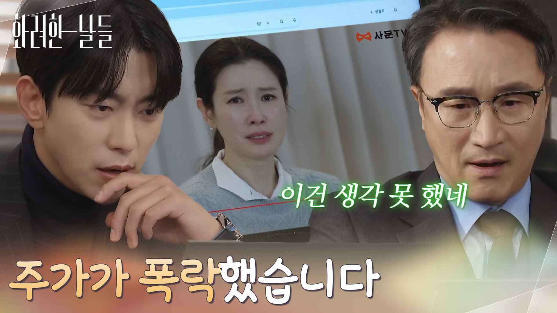 "주가가 폭락했습니다"이태란이 찍은 방송을 보게 되는 윤현민과 박성근 Copyright ⓒ KBS. All rights reserved. 무단 전재, 재배포 및 이용(AI 학습 포함) 금지