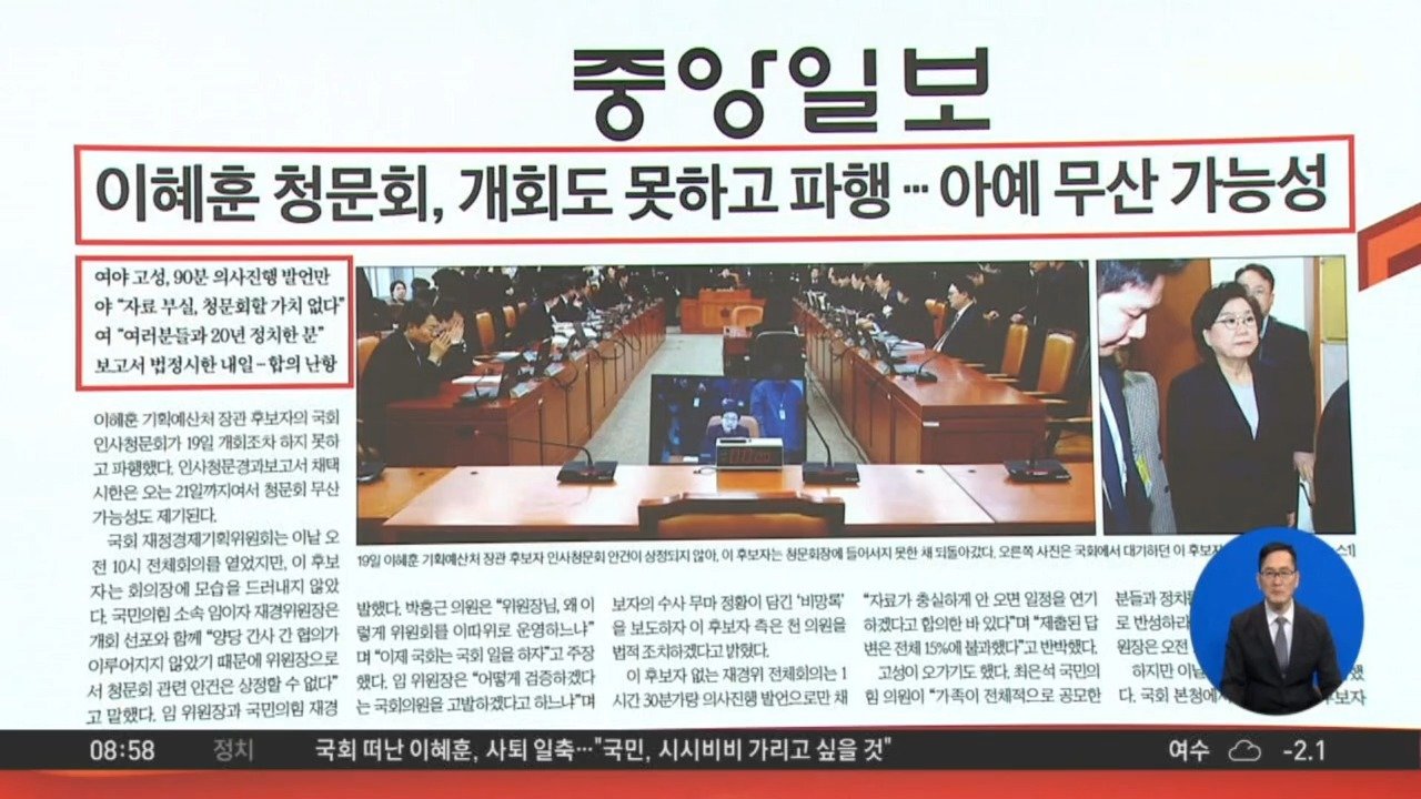 재생 0회 | 등록 2026.01.20<중앙> 이혜훈 청문회, 개회도 못하고 파행…아예 무산 가능성 <경향> "1.8km 기어와 50m 앞서 급습…그들은 '터미네…