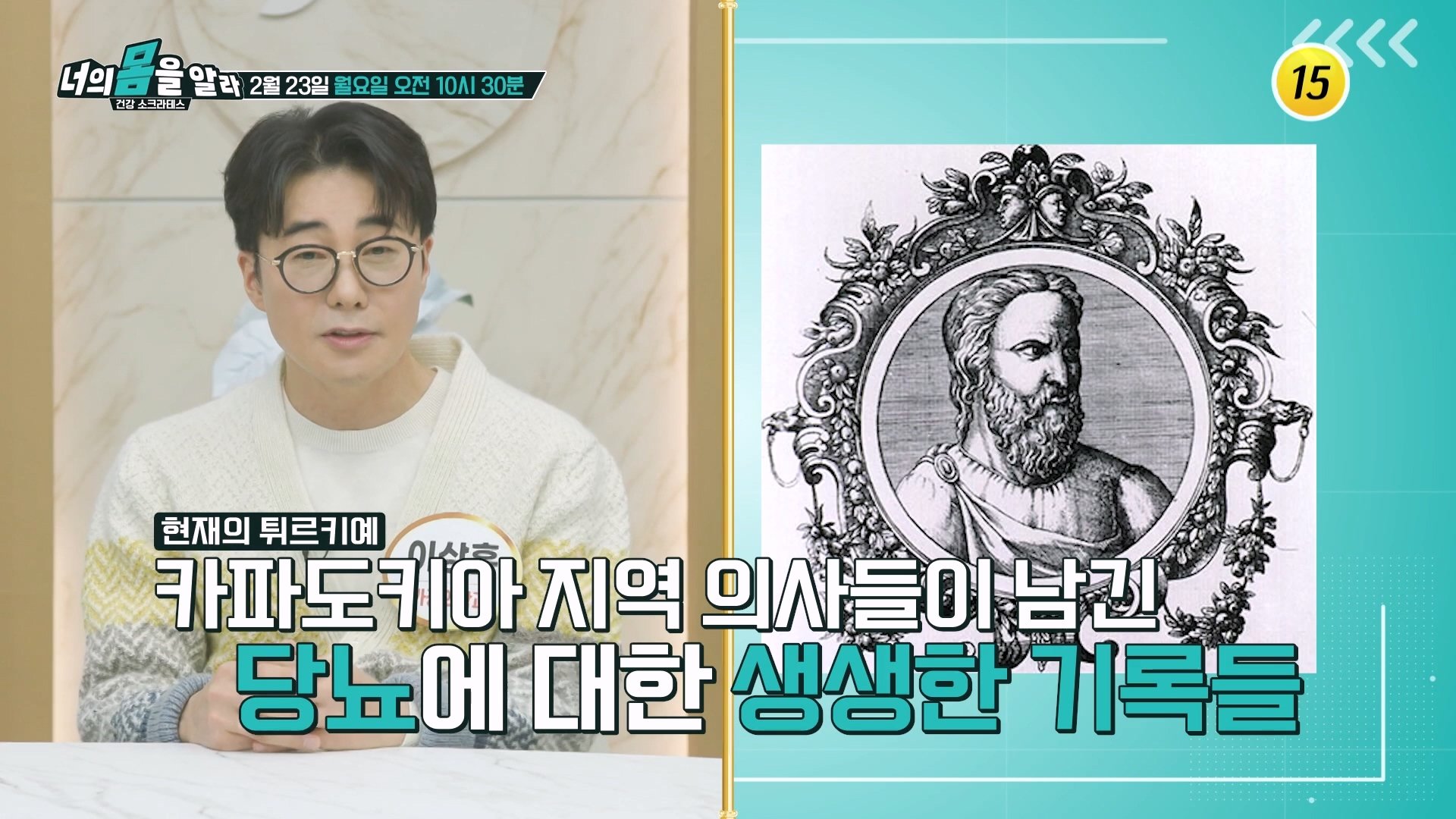 세월의 흐름이 고스란히 남는 〈무릎〉! 무릎 연골이 점점 없어진다면? 연골이 손상된 퇴행성 관절염, 그 고통은 상상 이상이라는데. 관절염 치료법, 염증과 통증에 따라 달라진다? 인공관절 수술이 필요한 경우와 수술 후 관리법은 무엇일까? 과거부터 현재까지 우리를 괴롭히는 〈당뇨〉! 장 환경을 개선하는 것이 당뇨 예방의 첫걸음이다?! 그렇다면 장 건강은 어떻게 지켜야 할까? 장내 환경 개선뿐만 아니라 혈당 상승 억제까지 돕는 〈혈당유산균 HAC01〉! 혈당유산균 HAC01이 혈당 관리에 어떻게 도움이 될 수 있는지 함께 알아본다. 2월 23일 (월) 오전 10시 30분 방송
