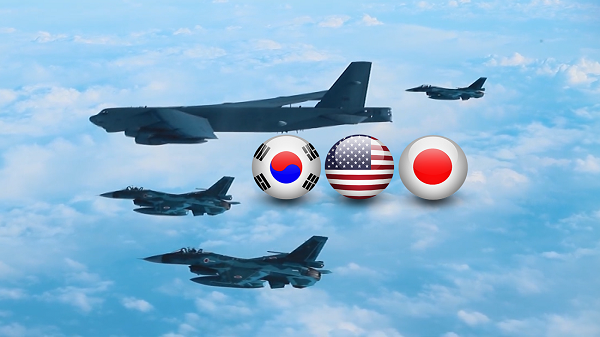 최근 동해에서 한미일 훈련 대신 일본과 훈련했던 B-52 미 전략폭격기는 괌 전진 배치 전력으로 확인됐습니다. 미 본토로 가지 않고 괌에 머물 수 있는데도 "다케시마의 날을 피해 훈련하자"는 요청을 수용하지 않았습니다. 갈태웅 기자입니다.