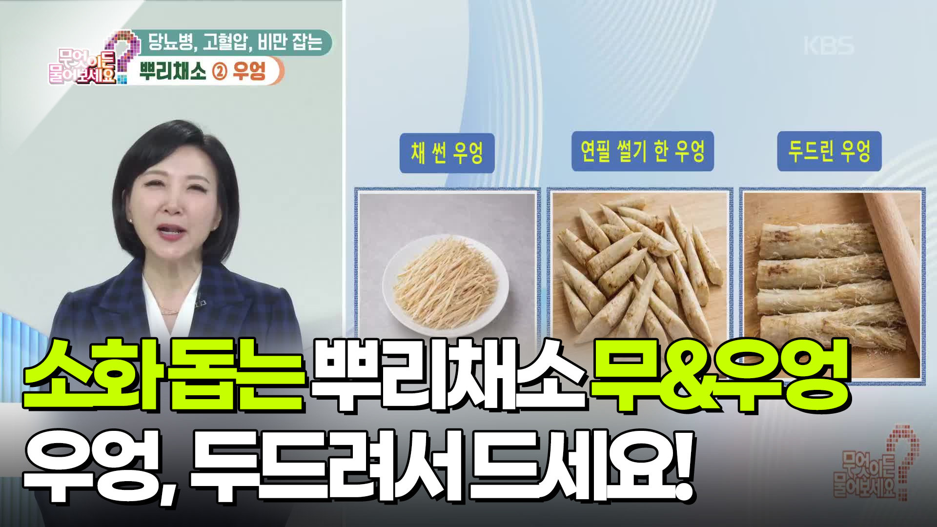 [티벗쇼, 고향 밥상] 우엉은 두드려라! 소화를 돕는 무&우엉 Copyright ⓒ KBS. All rights reserved. 무단 전재, 재배포 및 이용(AI 학습 포함) 금지