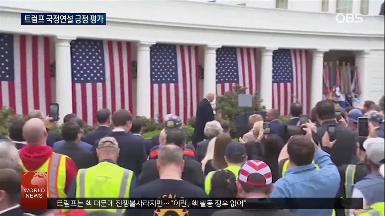 【앵커】 트럼프 미국 대통령의 어제 국정연설에 대해 미 언론들은 ′자화자찬′에만 매몰됐다고 평가했는데요. 하지만 국정연설을 시청한 미국 시민들은 긍정적이란 반응이 더 많았습니다. 김지유 월드리포터입니다.