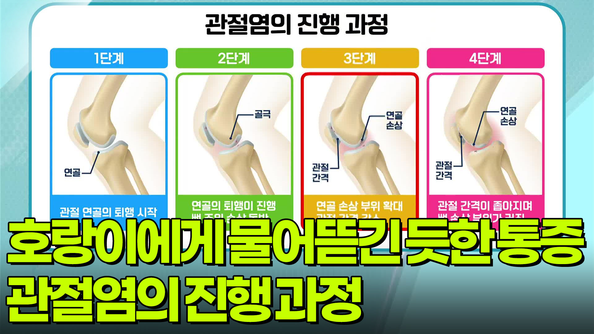 재생 0회 | 등록 2026.02.27[퀴즈탐험 내 몸의 세계] 호랑이에게 물어뜯긴 듯한 통증, 관절염 Copyright ⓒ KBS. All rights rese…