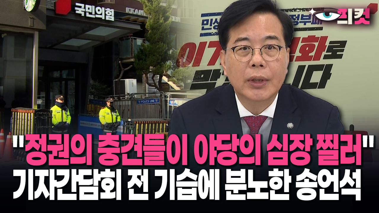 [현장영상] "정권의 충견들이 야당의 심장 찔러"... 기자간담회 전 기습에 분노한 송언석