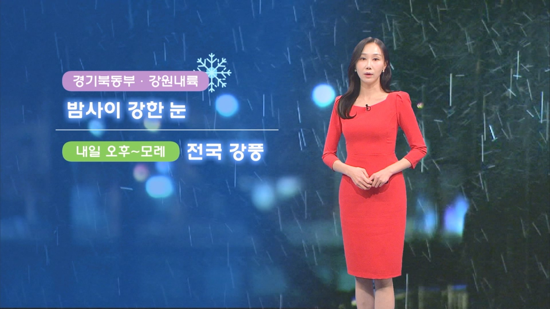 내일까지 전국에 비나 눈이 이어지겠습니다. 수도권은 새벽에, 그 밖의 지역은 오전에 대부분 그치겠지만, 서쪽을 중심으로 오후부터 밤 사이 다시 내리는 곳이 있겠습니다. 비는 전국에 5-20mm 사이로 내리겠고요. 눈은 강원산지 많은 곳은 15cm 이상, 그 밖의 강원내륙에도 최대 8cm, 경기북동부에도 최대 7cm까지 폭설이 예상됩니다. 또, 그 밖의 지역에는 1-5cm 사이로 쌓일 수 있겠습니다. 내일 새벽까지 경기북동부와 강원내륙에는 강한 눈이 이어질 것으로 보여 대설특보가 발효중이고요. 오후부터는 전국적으로 바람이 강하게 불겠습니다. 눈, 비가 그친 뒤에는 찬 공기가 내려와 내일 낮 기온이 크게 오르지 않겠습니다. 서울이 6도, 전주가 7도에 그치겠는데요. 체감온도는 2-4도 가량 더 낮겠습니다. 수도권 지역은 인천이 5도, 김포와 연천도 5도를 기록하겠습니다. 경기동부 광주도 5도를 보이겠고요. 경기남부 화성은 4도에 머물겠습니다. 내일 전 해상 먼바다의 물결은 높게 일고, 바람도 강하게 불겠습니다. 주말 아침에는 기온이 크게 떨어지며 추워지겠습니다. 날씨였습니다.