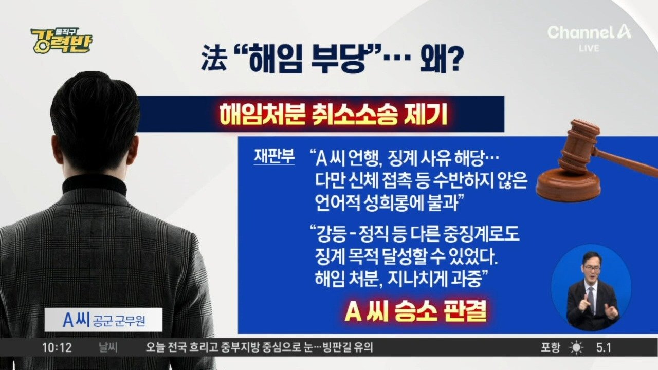 [돌직구 강력반]부하 직원 성희롱한 군무원…법원 “해임 부당”