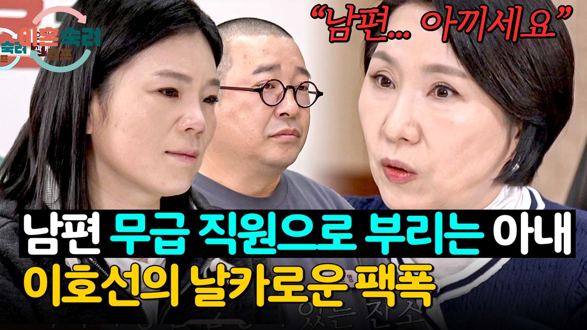 09:03재생중"저 같으면 집에 안 있어요" 남편 들들 볶는 아내에게 팩폭 날리는 이호선 | JTBC 260101 방송