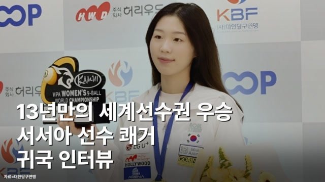 재생 0회 | 등록 2026.01.0212월 미국서 열린 세계여자9볼선수권에서 정상에 오른 서서아. 이로써 서서아는 당구여제 김가영 이후 13년만에 한국선수 우승…