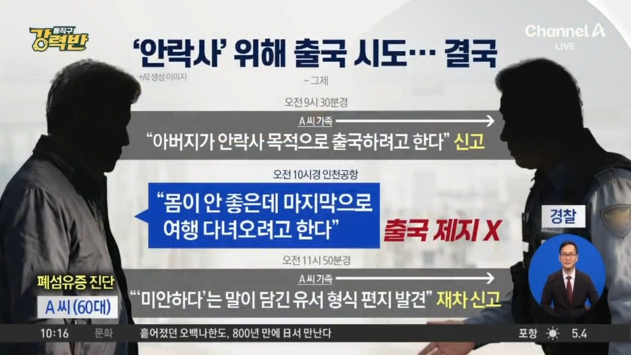 [돌직구 강력반]안락사하러 출국하려던 60대 남성 막은 경찰