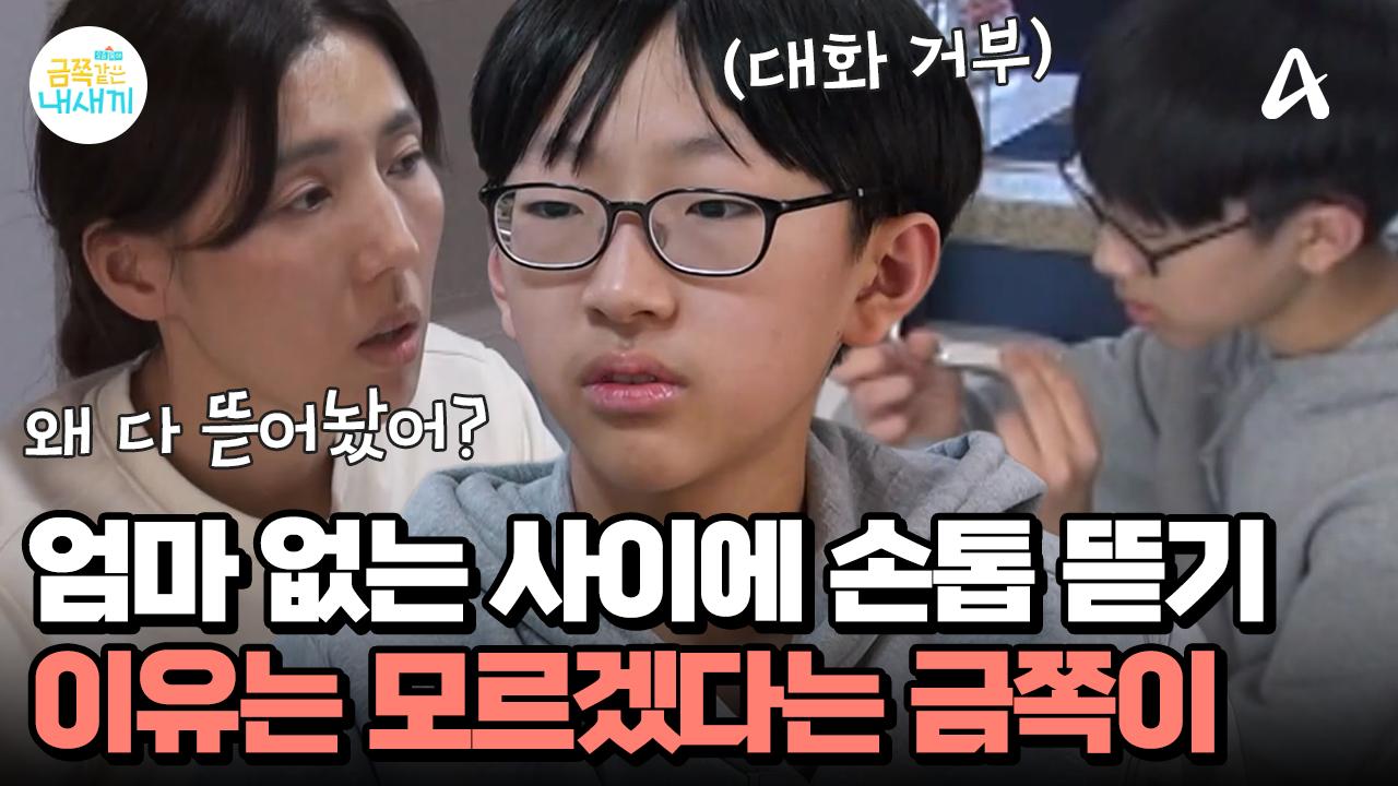 의미 없는 대화 중단! 또다시 손톱을 뜯는다? 공감이 어려운 금쪽이와 비슷한 엄마의 상태?! #금쪽같은내새끼 #금쪽이 #손톱 #자해 #오은영 #분석 #엄마 #자식 #중1 금쪽같은 내새끼를 위해 가족이 변하는 리얼 메이크오버 쇼! [요즘육아 금쪽같은 내새끼] 매주 금요일 저녁 9시 방송 Copyright Ⓒ 채널A. All rights reserved. 무단 전재, 재배포 및 AI학습 이용 금지