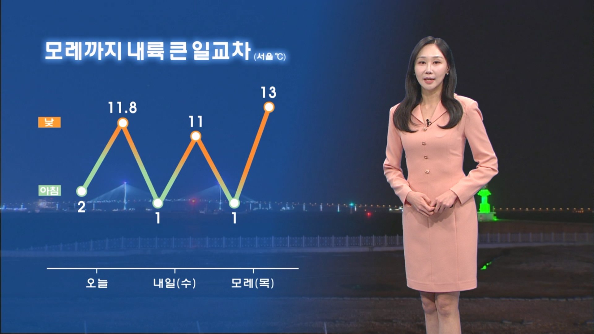 [03/03] 내일 내륙 중심 큰 일교차…중서부 밤 미세먼지 (권하경 기상캐스터)