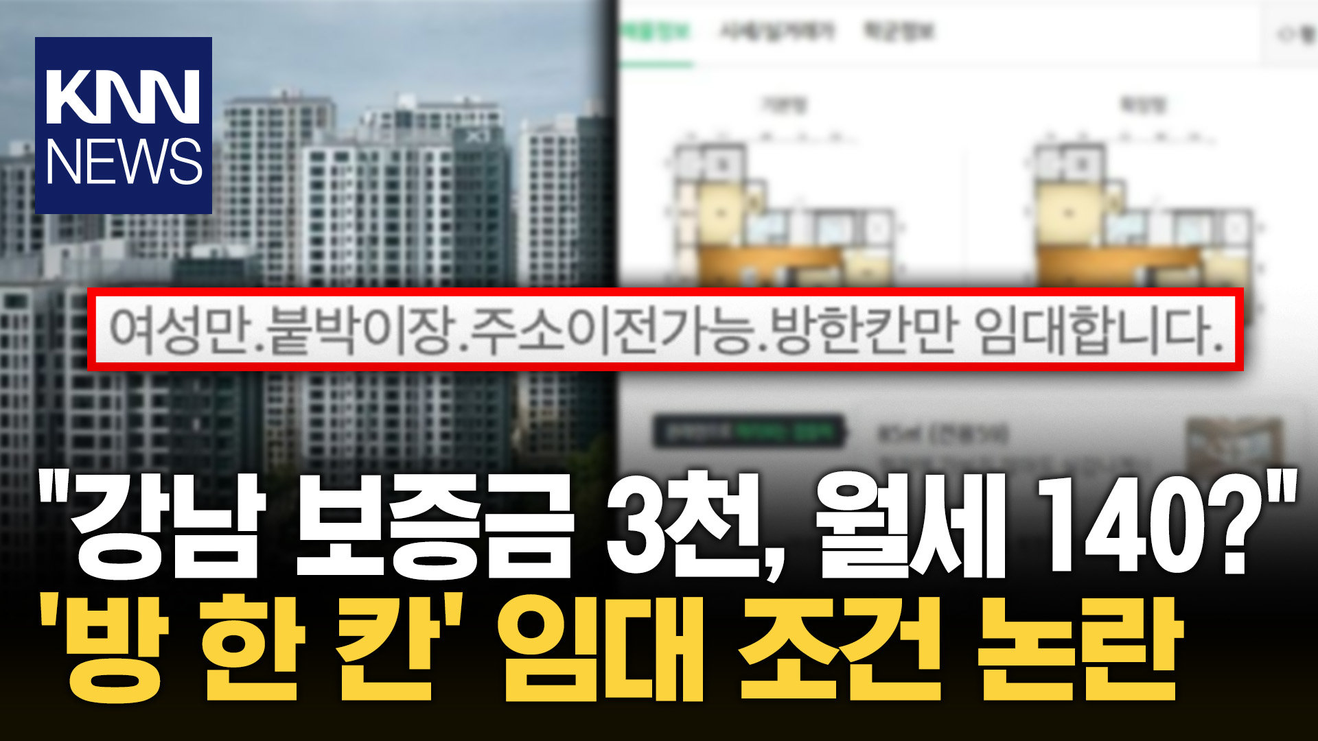 아파트 방 한 칸에 ′3000/140′ "강남이면 이해" vs "너무 비싸" / KNN