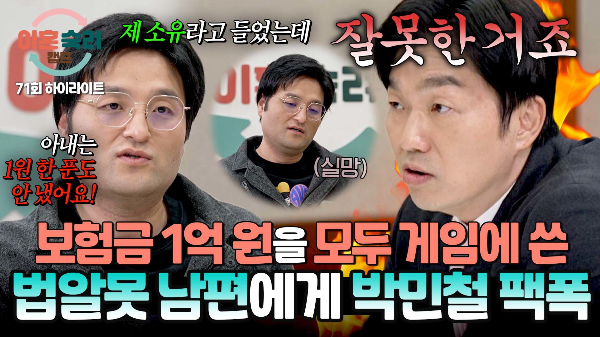 재생 0회 | 등록 2026.01.23[하이라이트] 아내가 괘씸해서 자신이 탄 보험금 '1억 원'을 게임에 썼다?! 법률 상담 후 역풍 맞은 남편 #이혼숙려캠프 …