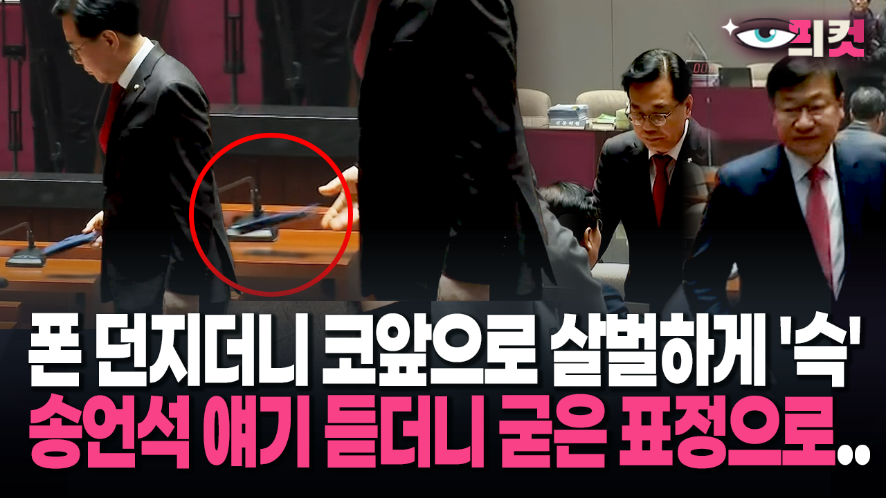 [현장영상] 송언석, 폰 던지더니 정점식에게…국힘 의총 전 ′당황 순간′ 포착