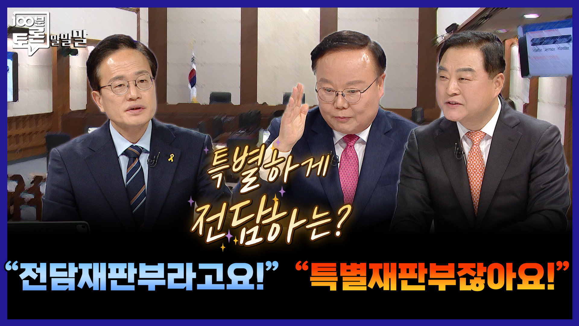 재생 0회 | 등록 2025.12.17[100분토론 말말말] 특별하게 전담하는? "전담 재판부라고요!" "특별재판부잖아요!", MBC 251216 방송 ⓒ MBC…