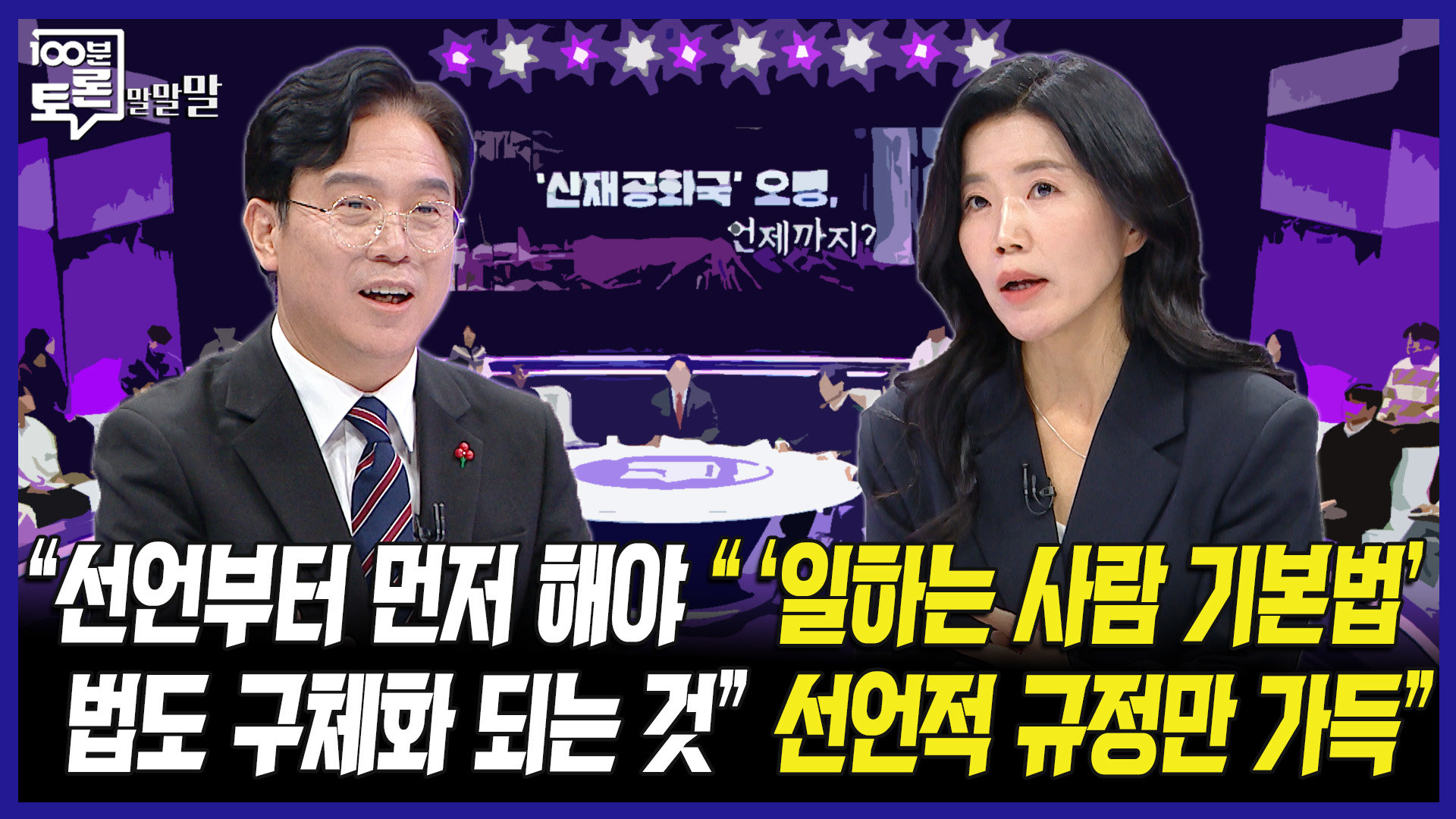 [100분토론 말말말] "선언부터 먼저 해야 법도 구체화되는 것" "'일하는 사람 기본법' 선언적 규정만 가득", MBC 260106 방송 ⓒ MBC&iMBC 무단 전재, 재배포 및 이용(AI학습 포함) 금지