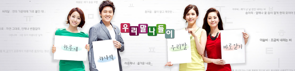 우리의 말과 글을 지키고 아름답게 가꾸는 나들이를 여러분과 함께 하고자 합니다. 늘 쓰는 우리말과 글이지만 어떻게 써야 정확한지 알 수 없는 경우가 많이 있습니다. 또한 넘쳐나는 외래어와 은어, 비속어가 잘못된 것인 줄은 알지만 어떻게 바꾸어 써야 하는지 모르는 경우도 있습니다. <우리말 나들이>는 바로 이런 문제 해결을 위한 나들이를 떠납니다