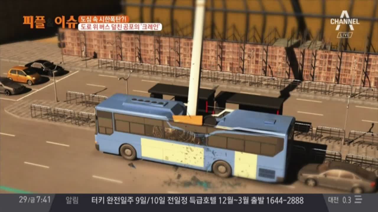 도심 한복판서 도로 위 버스 덮친 공포의 크레인