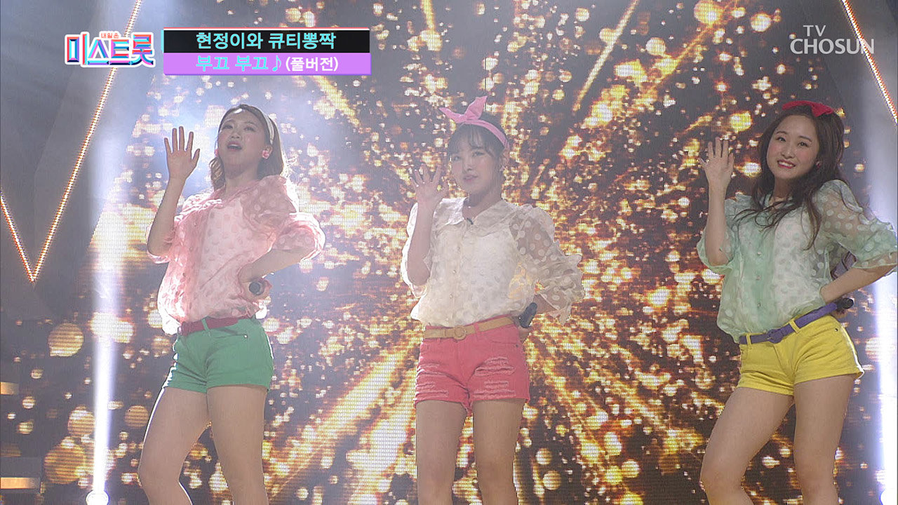02:42재생중[풀버전] 미소가 절로 지어지는^^ 현정이와 큐티뽕짝 '부끄부끄' ♪미스트롯 full ver