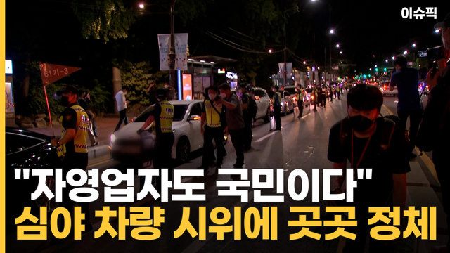 "자영업자도 국민이다" 심야 차량 시위 경찰 통제에 곳곳 정체 [이슈픽]