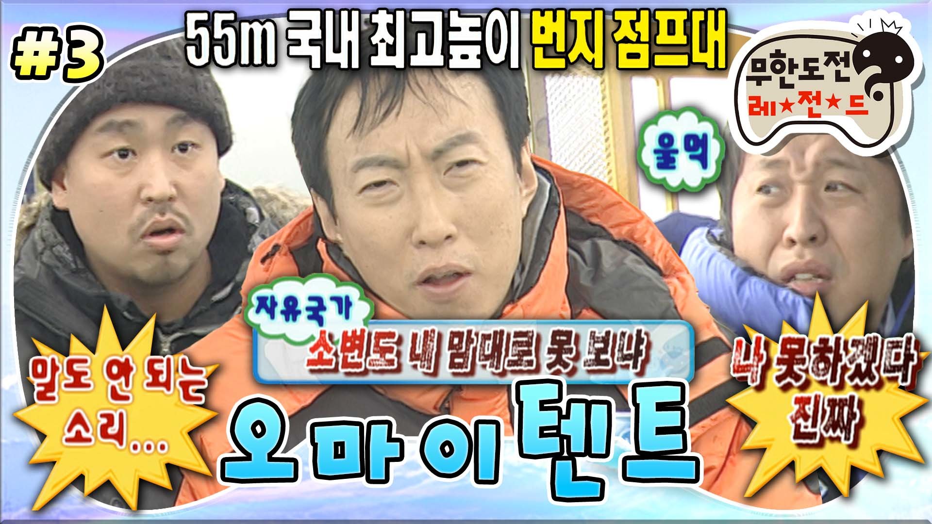 [올끌][무도] '화장실도 못 가요?' 국내 최고 높이 55m 번지점프대에서 24시간 보내게 된 하와수 & 길 '오마이텐트' 3편 MBC100306방송