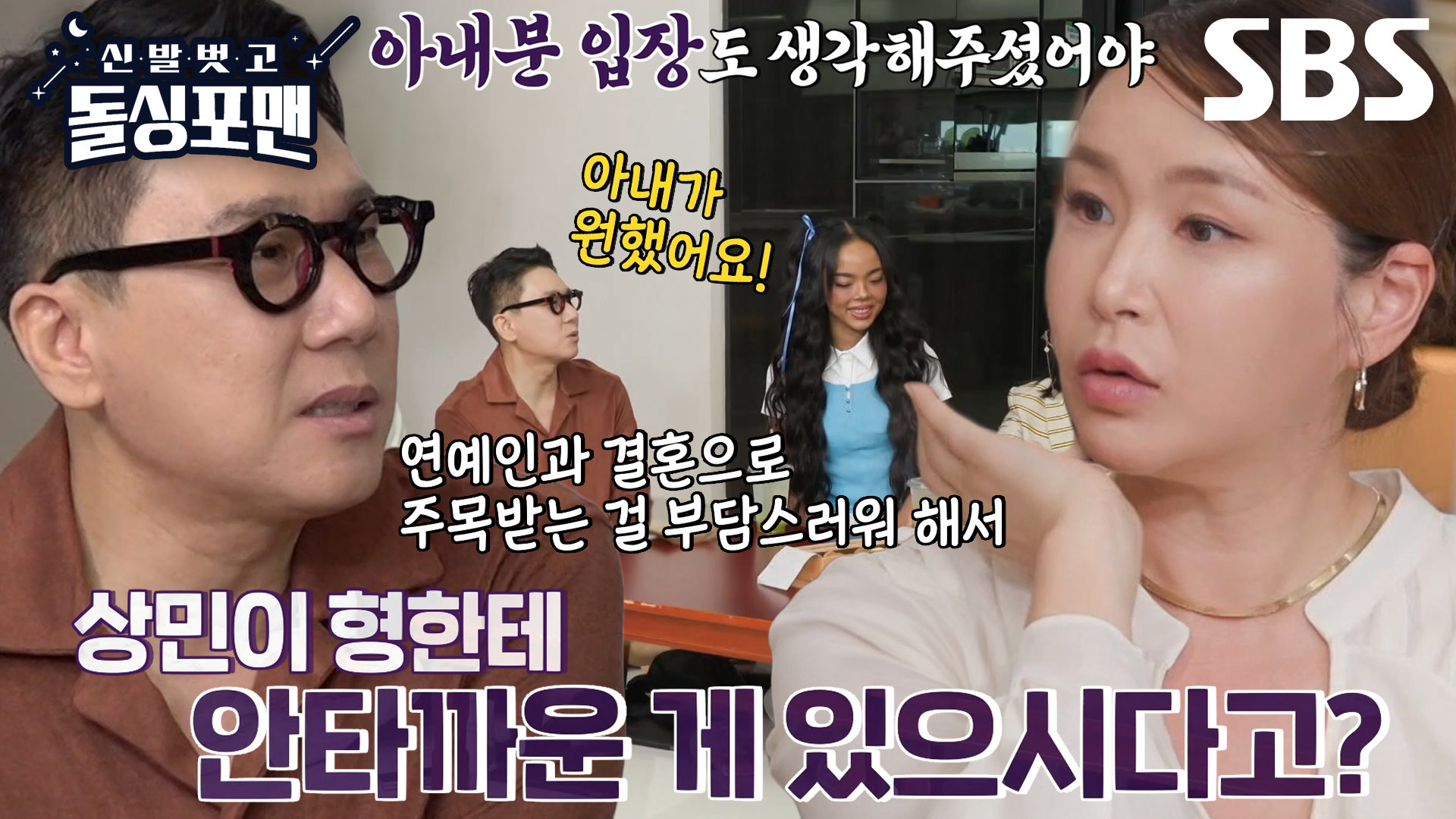 배윤정은 아내를 배려하지 않은 이상민을 향해 질책한다. 예 능 | 신발 벗고 돌싱포맨 186회 본방송 | 5월 27일 화요일 밤 11시 40분 Copyright ⓒ SBS. All rights reserved. 무단 전재, 재배포 및 AI학습 이용 금지