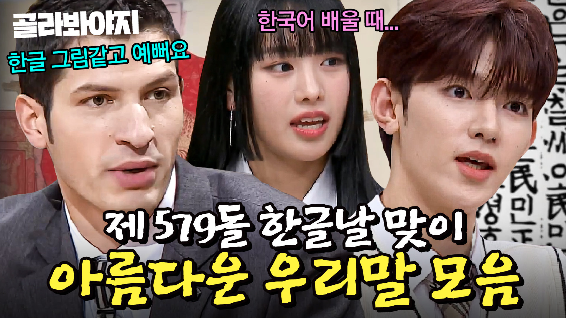 재생 0회 | 등록 2025.10.03한글날 맞이 아름다운 우리말 모음 #비정상회담 #아는형님 #한글날 #우리말 [JTBC봐야지] 구독하기 https://url.…
