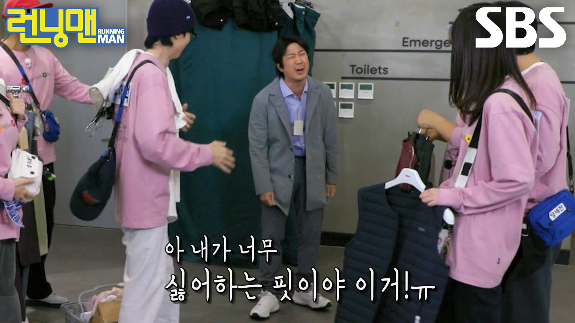하하는 런닝맨 멤버들이 추천한 코디를 입고 괴로워한다. 예 능 | 런닝맨 776회 본방송 | 11월 2일 일요일 밤 6시 10분 Copyright ⓒ SBS. All rights reserved. 무단 전재, 재배포 및 AI학습 이용 금지