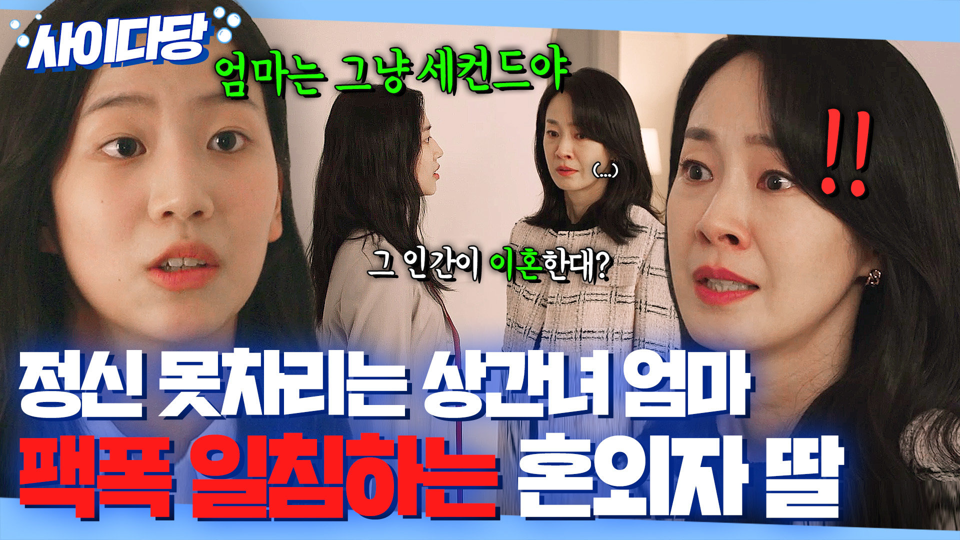 재생 0회 | 등록 2025.11.14불륜 저질러 낳은 딸의 팩폭 일침 #닥터차정숙 #엄정화 #김병철 #명세빈 #박준금 [JTBC 드라마봐야지] 구독하기 http…