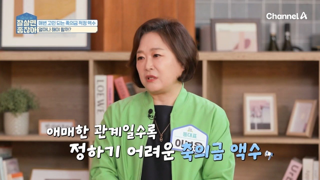직장 동료 결혼식, 적정 축의금 액수는? 1인 기준 축의금 10만원, 식사 가능? 재미로 이야기해보는 결혼식 축의금 [잘 살면 좋잖아] 수요일 오후 1시 20분 방송 Copyright Ⓒ 채널A. All rights reserved. 무단 전재, 재배포 및 AI학습 이용 금지