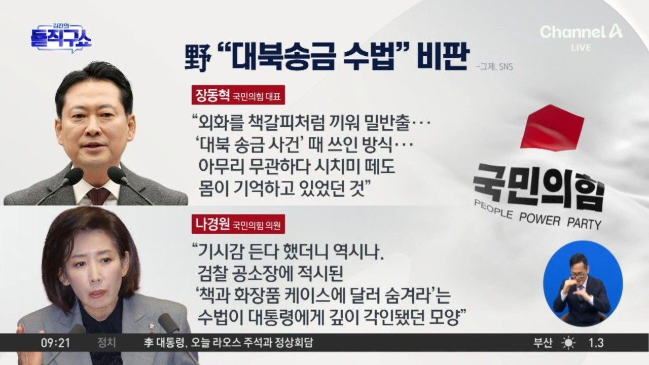 16:16재생중이 대통령 ‘책갈피 달러 반출’ 언급에…野 “대북송금 수법” 비판