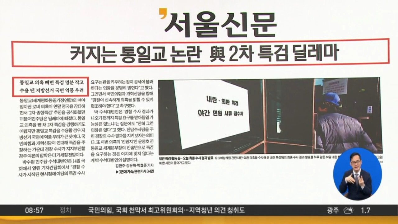재생 0회 | 등록 2025.12.15<서울> 커지는 통일교 논란, 與 2차 특검 딜레마 <동아> 먹잇감이 된 '치매머니' 154조 <조선> 한밤 맹장 터지면 수…