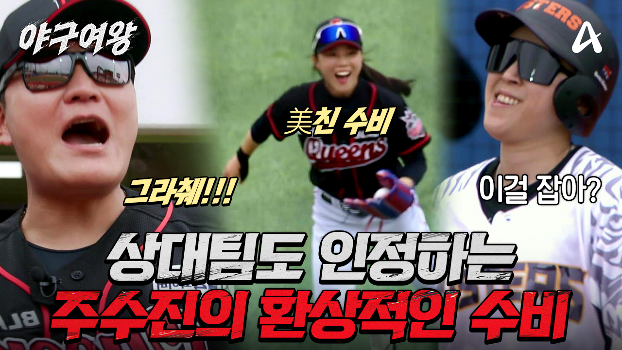 [#야구여왕 선공개] "이걸 잡는다고!?" 상대팀도 인정하는 환상적인 슈퍼 캐치로 미친 수비를 보여준 주수진