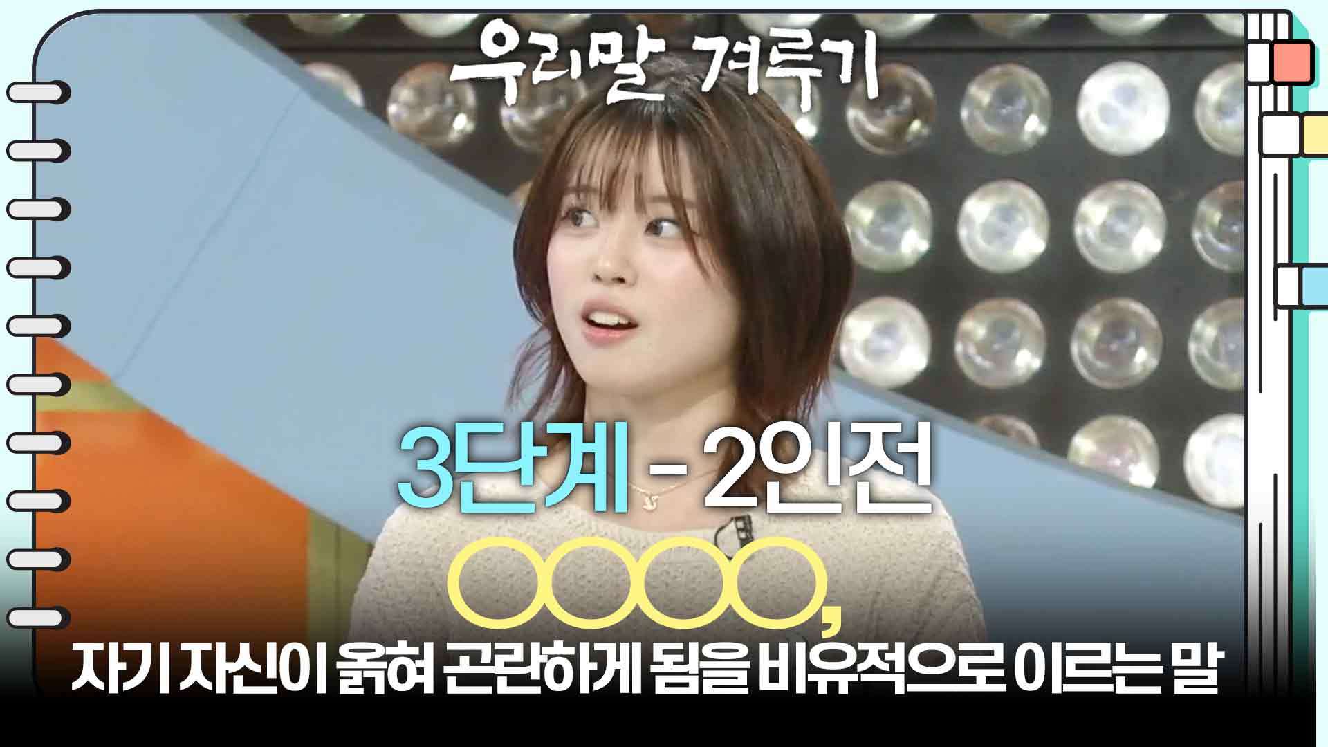 [3단계 - 2인전] ○○○○, 자기 자신이 옭혀 곤란하게 됨을 비유적으로 이르는 말 Copyright ⓒ KBS. All rights reserved. 무단 전재, 재배포 및 이용(AI 학습 포함) 금지