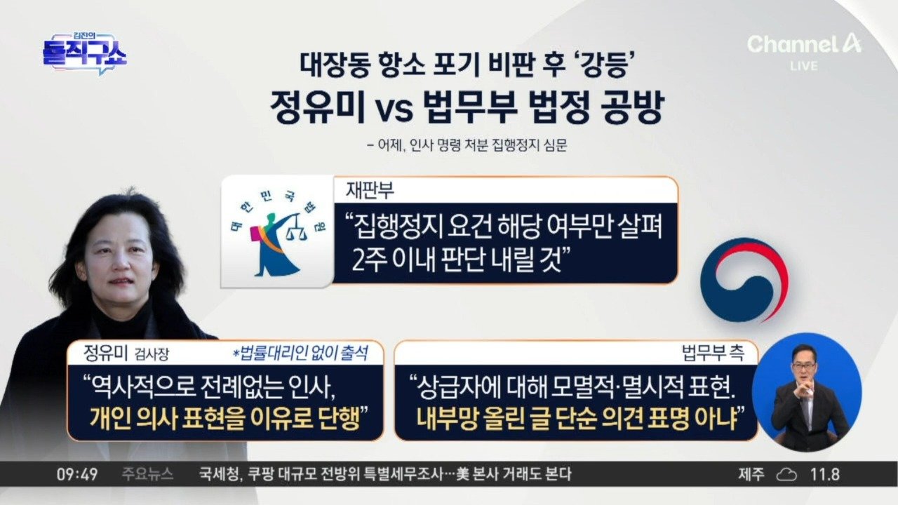 재생 0회 | 등록 2025.12.23'사실상 강등' 정유미 "미운 털 박혀 무리한 인사" '강등' 정유미-법무부, 법원서 충돌… 인사 적법성 공방 정유미 "개인…