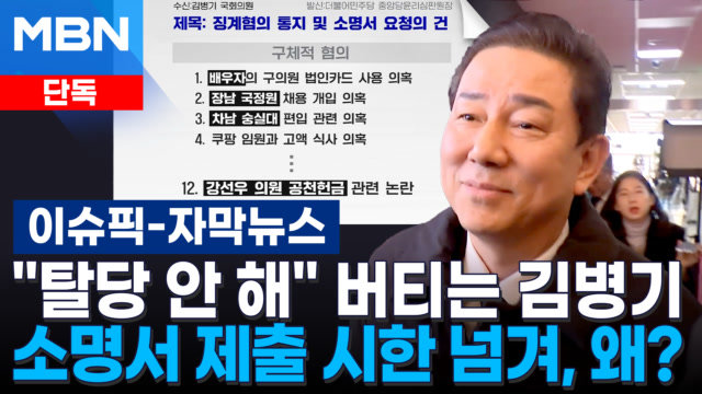 재생 0회 | 등록 2026.01.09연일 커지는 파문에도 김병기 의원은 사실상 버티기에 들어간 모습입니다. 저희 MBN이 단독 입수한 민주당 윤리심판원 문건을 …