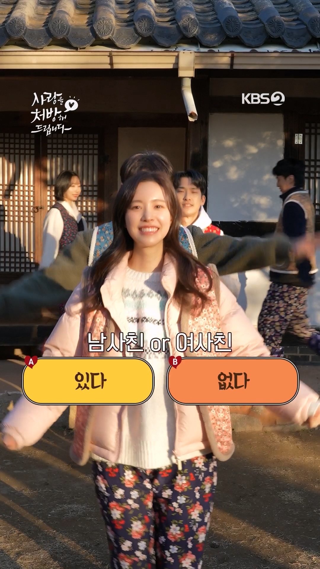 [세로] 밸런스 게임 | 남사친 or 여사친 있다? 없다?! 박기웅ㅡ진세연ㅡ차승주ㅡ김종훈ㅡ정예서ㅡ한승원ㅡ박정곤 [사랑을 처방해드립니다] 1월 31일 토요일 저녁 8시 KBS 2TV Copyright ⓒ KBS. All rights reserved. 무단 전재, 재배포 및 이용(AI 학습 포함) 금지